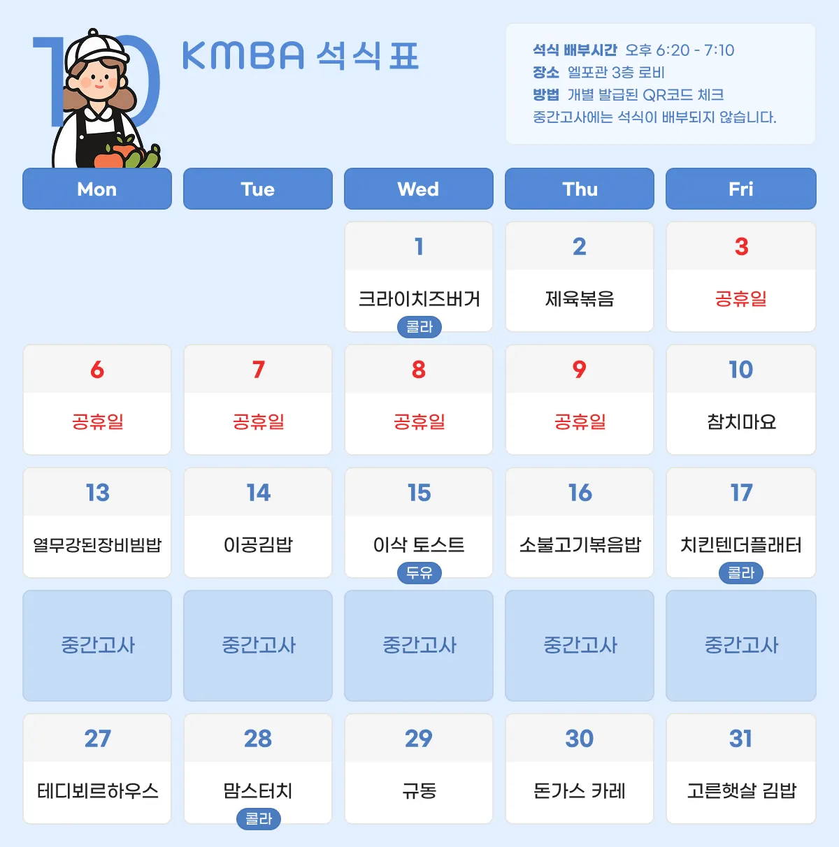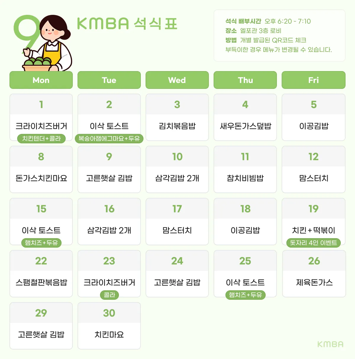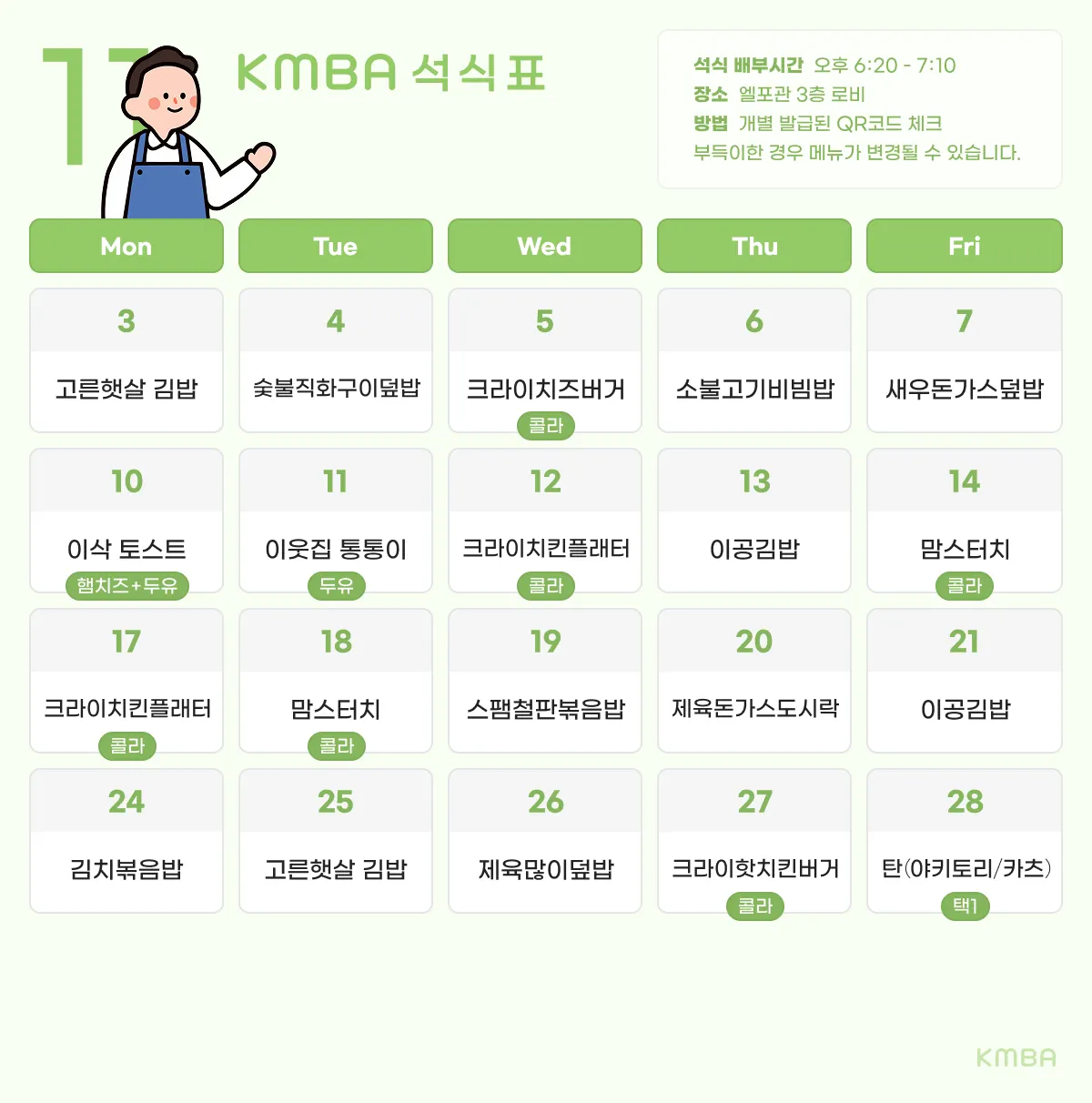 월간 석식 일정은 전월 말일에 업로드 됩니다.